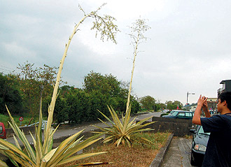 【媒體報導】黃紋萬年麻10年開花 居民稱奇
