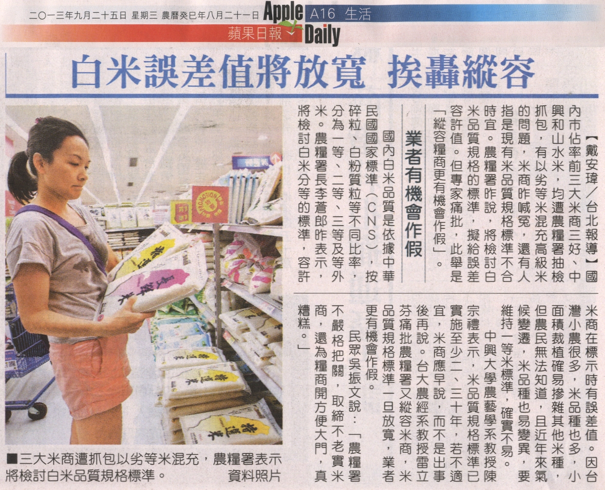 【媒體報導】白米誤差值將放寬 挨轟縱容
