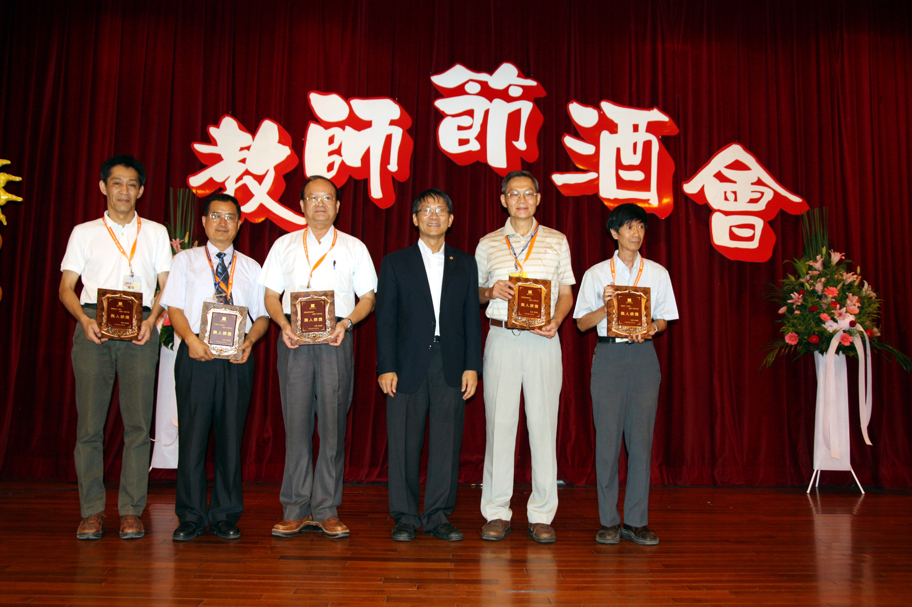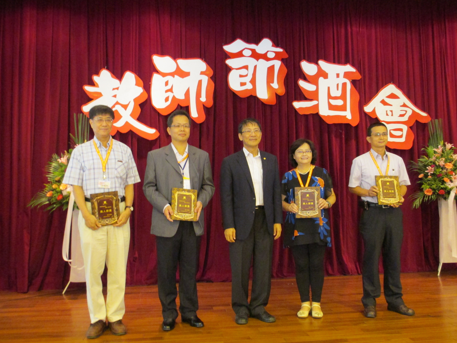 2013年「興人師獎」,得主左至右為資工系廖宜恩教授、環工系洪俊雄教授、生科系溫福賢教授、法律系林炫秋副教授。(圖/人事室提供) 2013年「興人師獎」,得主左至右為動科系陳洵一副教授、土環系陳仁炫教授、食生系陳錦樹教授、化學系楊圖信教授、物理系林立副教授。(圖/媒體公關組攝)