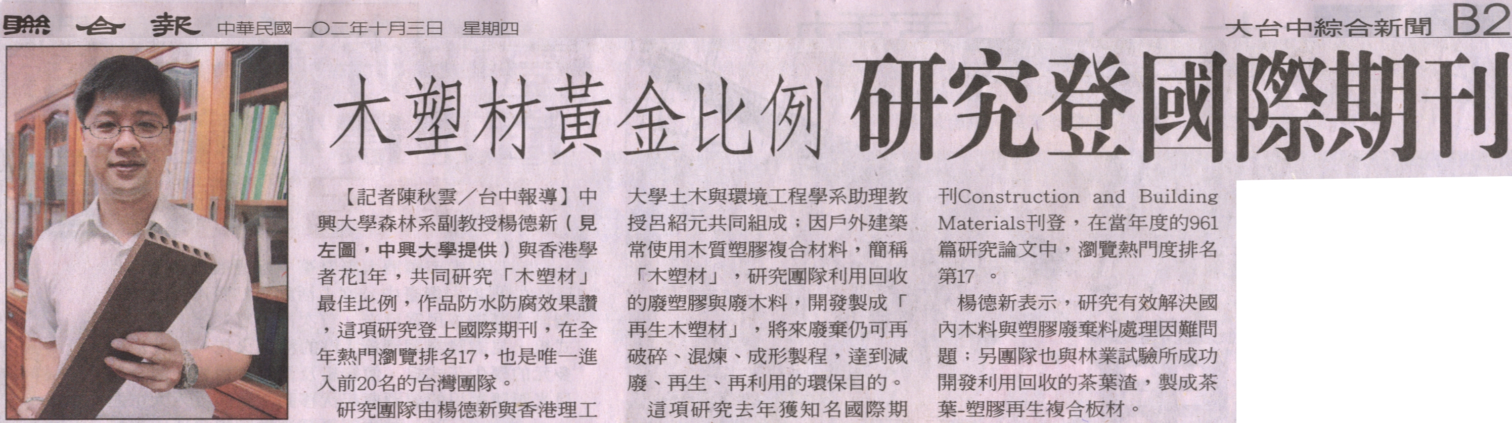 【媒體報導】木塑材黃金比例 研究登國際期刊