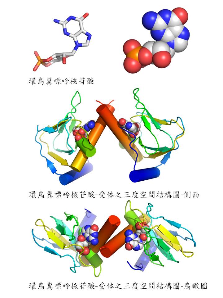 全球首見的環鳥糞嘌呤核苷酸與其受体的三度空間結構