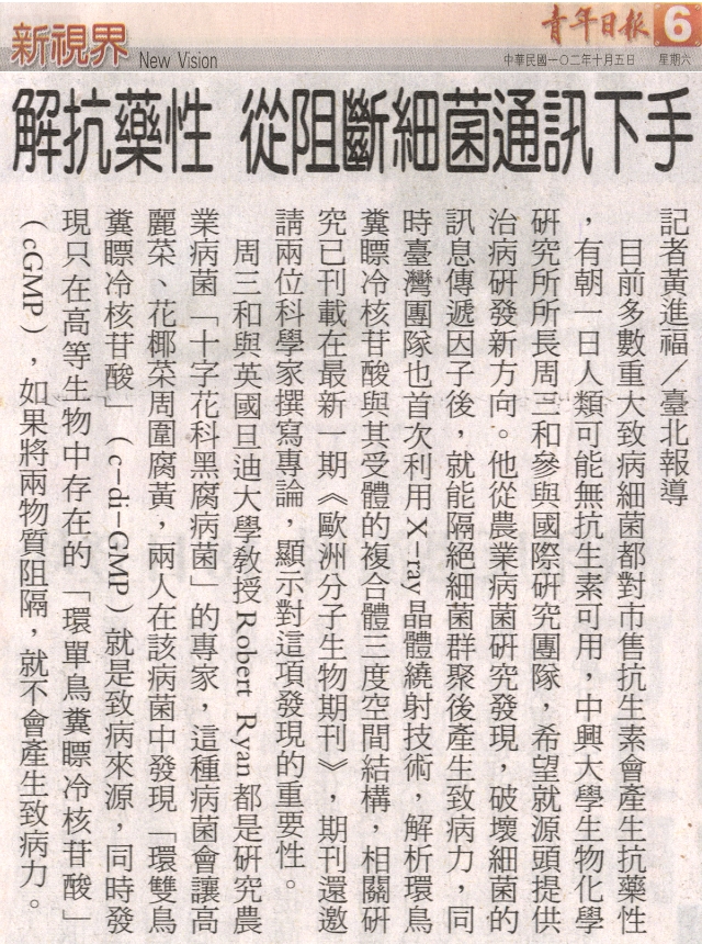 【媒體報導】解抗藥性 從阻斷細菌通訊下手