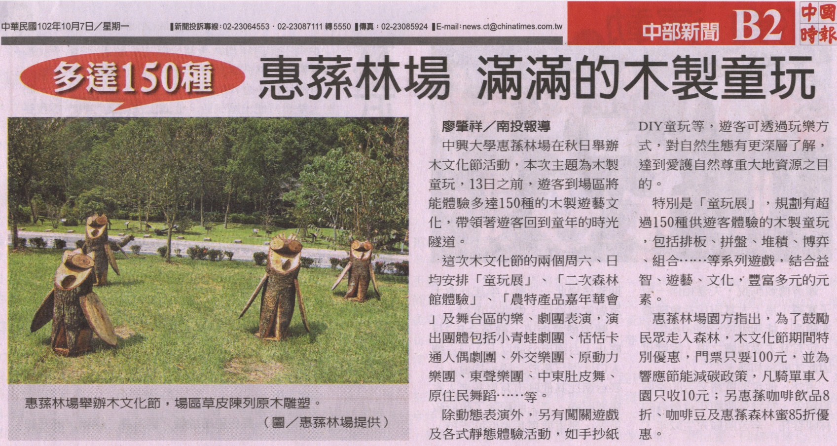 【媒體報導】多達150種 惠蓀林場 滿滿的木製童玩