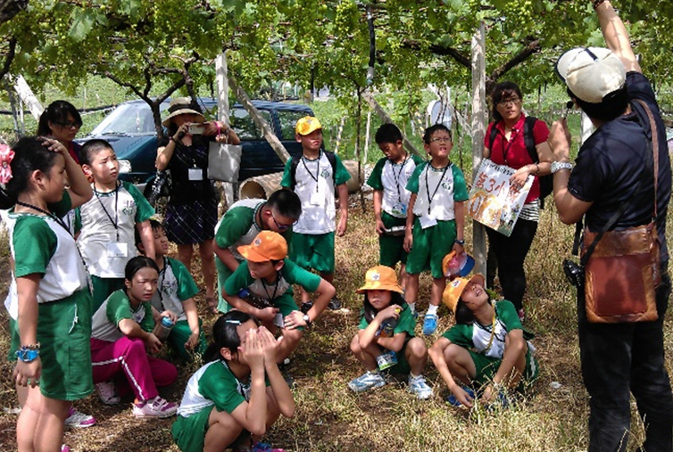 在9月24日的體驗活動中,學生除了認識、品嚐了客家的美食─麻糬外,更體驗了福民國小特殊的生活陶藝課程。福民國小的小主人們很盡責地依自己平時的學習經驗,分享並協助信義國小的小客人們一一完成了每個極具創意的陶土作品。午餐時間,更安排小朋友們在特殊的餐廳共食,一同學習在地語言─客家話,飯後兩校的小朋友們更是在這美麗的校園裡,一起遊玩。午后,都市學生漫步白毛台,參訪了白毛台的特色巨峰葡萄產業,沿途更認識許多不同的果園生態及農業相關知識。