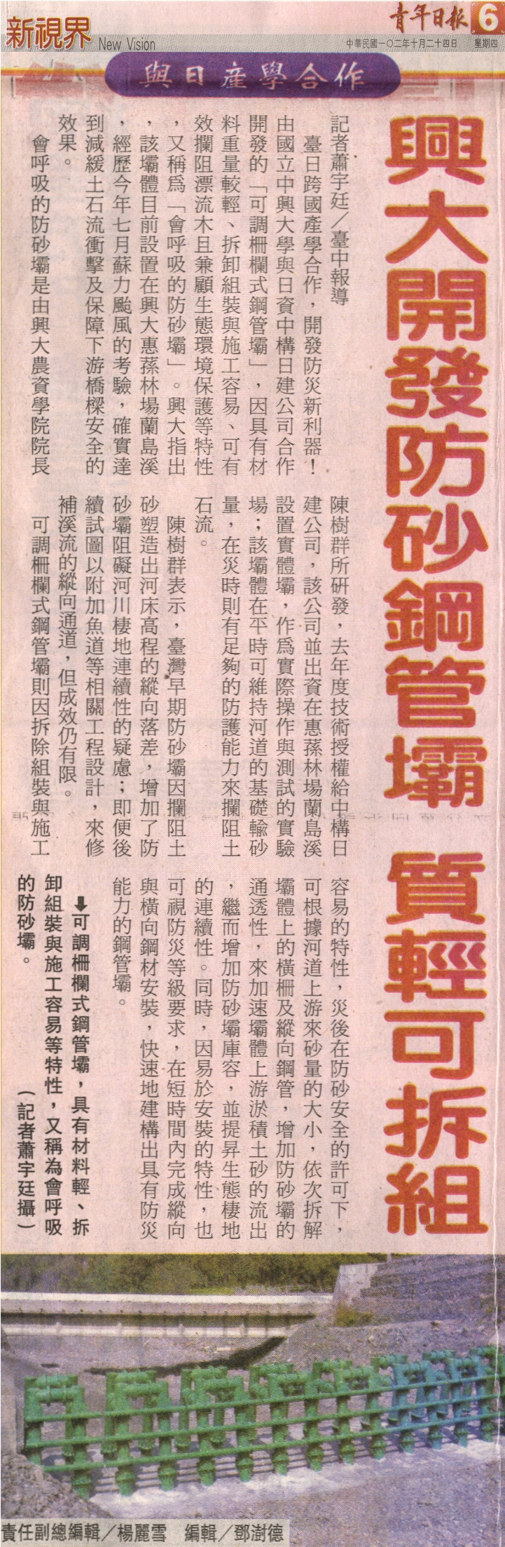 【媒體報導】興大開發防砂鋼管壩 質輕可拆組