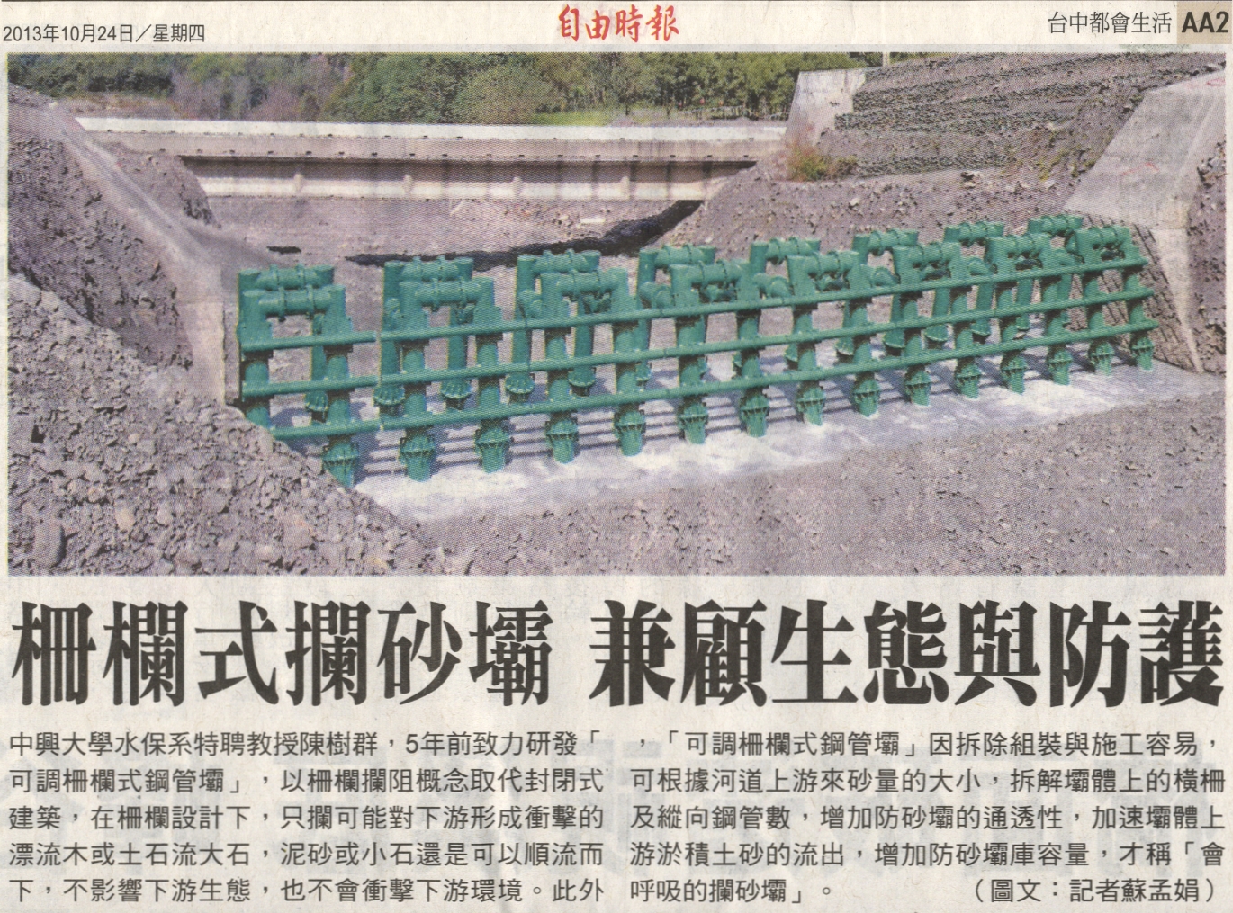 【媒體報導】柵欄式攔砂壩 兼顧生態與防護