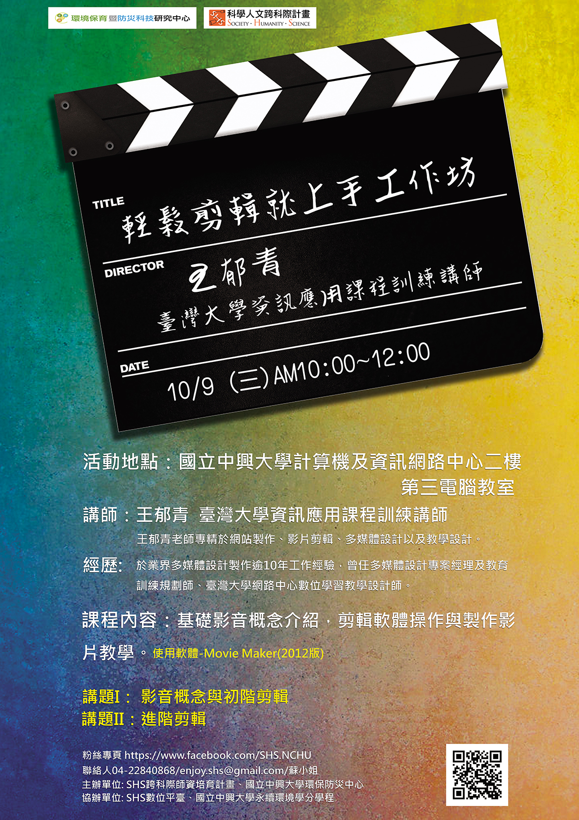 歡迎參加10/09(三)「輕鬆剪輯就上手」工作坊