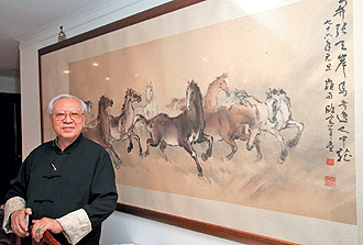 歐豪年善繪馬,圖為他和家中駿馬圖。 畫家歐豪年融合中西繪畫之長,拓展中國畫新方向。 |