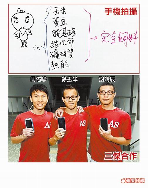 由中興大學動物科學所二年級學生徐振洋及動科系四年級謝靖辰、三年級周佑峻合作拍攝的「雞生長快速的原因」短片(tinyurl.com/n4pof8y),由手機拍攝手繪圖解的過程。