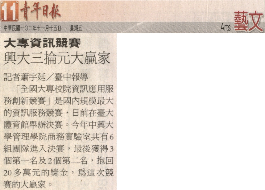 【媒體報導】大專資訊競賽 興大三掄元大贏家