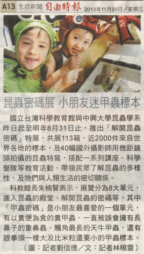 【媒體報導】昆蟲密碼展 小朋友迷甲蟲標本