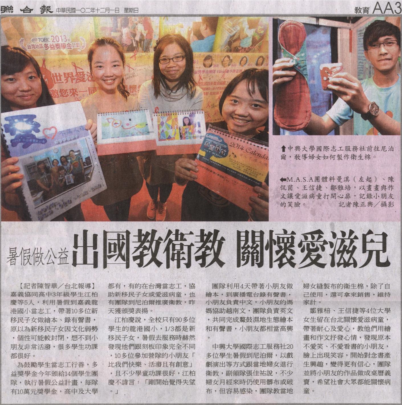 稿源:2013-12-01/聯合報/AA3/教育/陳智華/台北