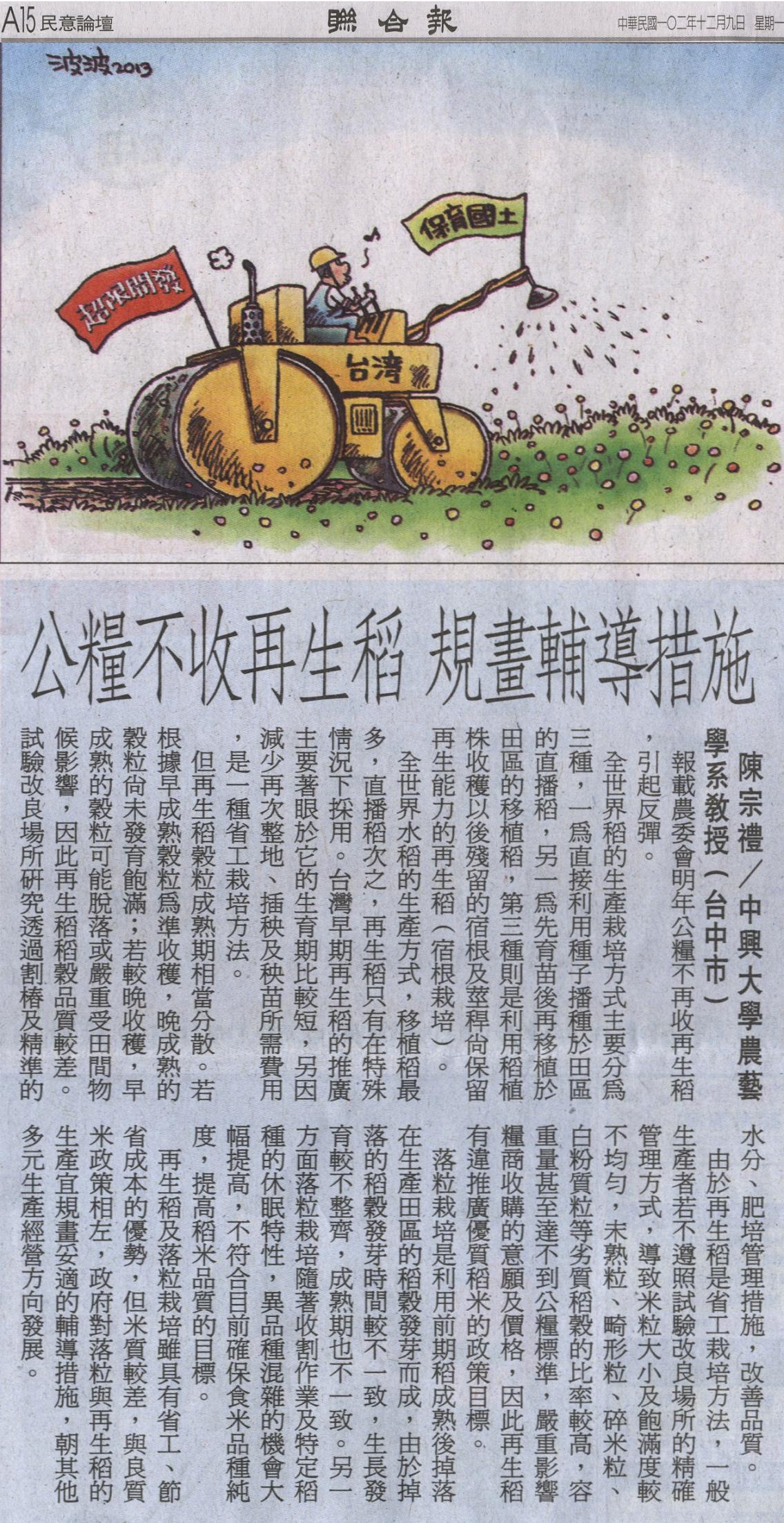 稿源:2013-12-09/聯合報/A15/民意論壇/陳宗禮/中興大學農藝學系教授