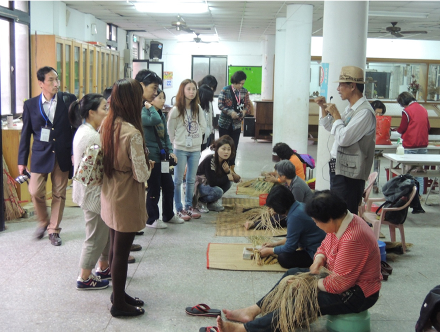 日本奈良女子大學師生參觀山腳社區藺草編織活動。