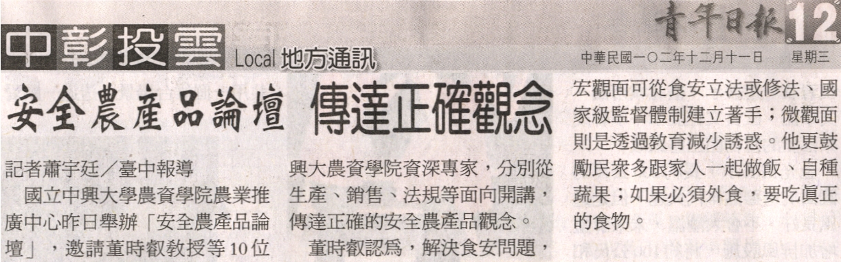 【媒體報導】安全農產品論壇 傳達正確觀念
