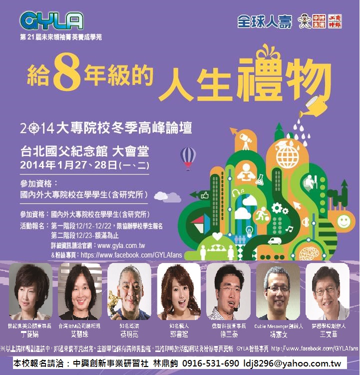 2014年GYLA大專院校冬季高峰論壇報名時間自12/12(四)起,額滿為止