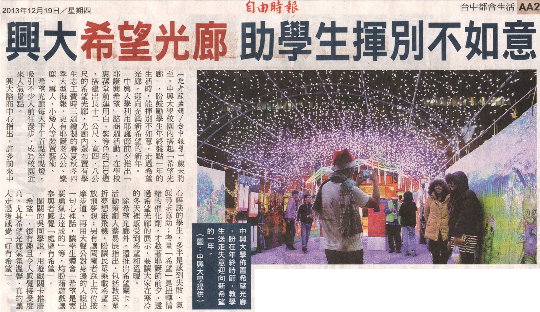 【媒體報導】興大「希望光廊」 助學生揮別不如意