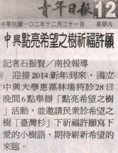 【媒體報導】中興點亮希望之樹祈福許願