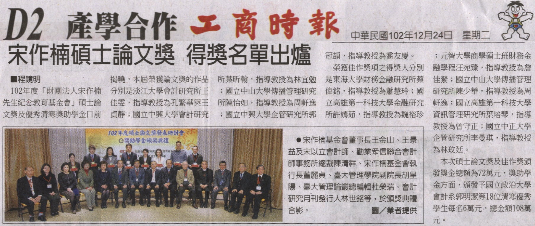 【媒體報導】宋作楠碩士論文獎 得獎名單出爐