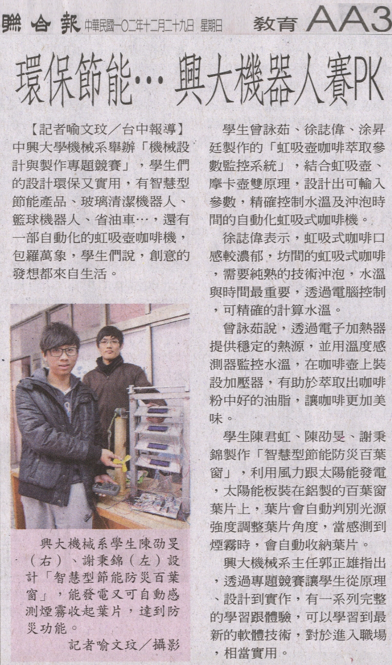 【媒體報導】環保節能… 興大機器人賽PK