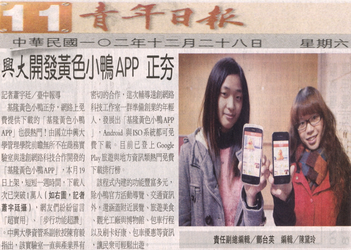 【媒體報導】興大開發黃色小鴨APP 正夯
