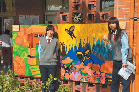 指導老師黃慧華說,學校沒有美術班,學生都是利用午休時間作畫,每幅作品長、寬都120公分,對高中生是很大的挑戰,全校高一、高二學生共完成14幅作品。