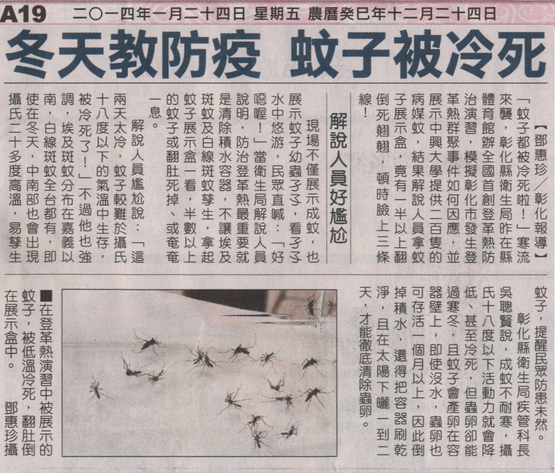 【媒體報導】冬天教防疫 蚊子被冷死