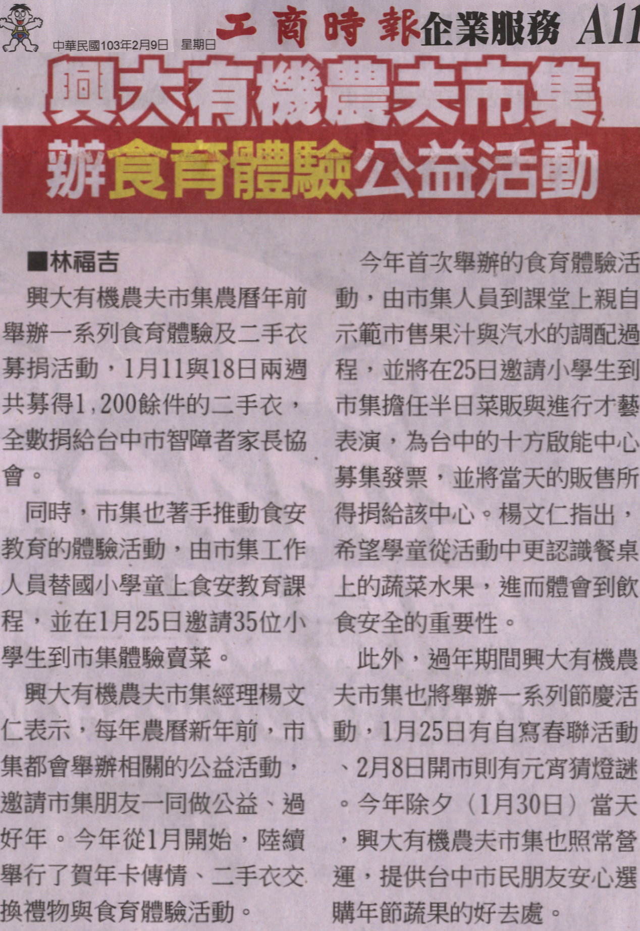 【媒體報導】興大有機農夫市集 辦食育體驗公益活動