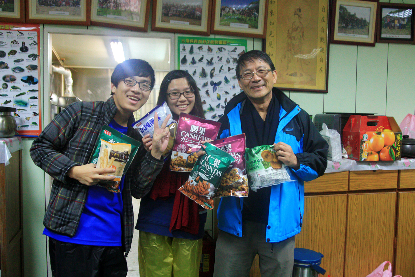 2月10日學生上山的第二天,興大李德財校長(右)特地到高冷地分場探望學生,並帶上乾糧慰勞學生。