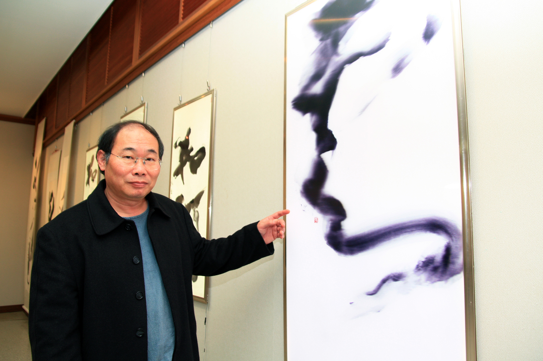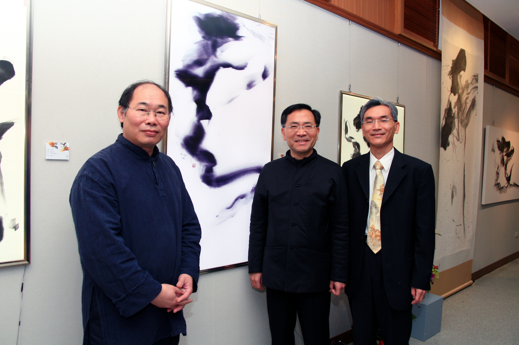 【圖文/秘書室媒體公關組】投入書法教學近30年的書法家張志鴻,本月15日至3月15日在中興大學藝術中心舉辦「逸情雲上—張志鴻現代書藝個展」,15日舉辦開幕茶會。此次個展由興大藝術中心與興大工學院合辦,展出的60多幅創作中,共有18件以雲為主題的書藝作品,張志鴻藉由字形線條到墨色深淺的表現呈現天上雲朵的幻化多變,創作融合傳統意蘊與時代書風書法作品,並結合現代LED燈技術製作出國內首見的3D書藝作品,創作風格獨特。