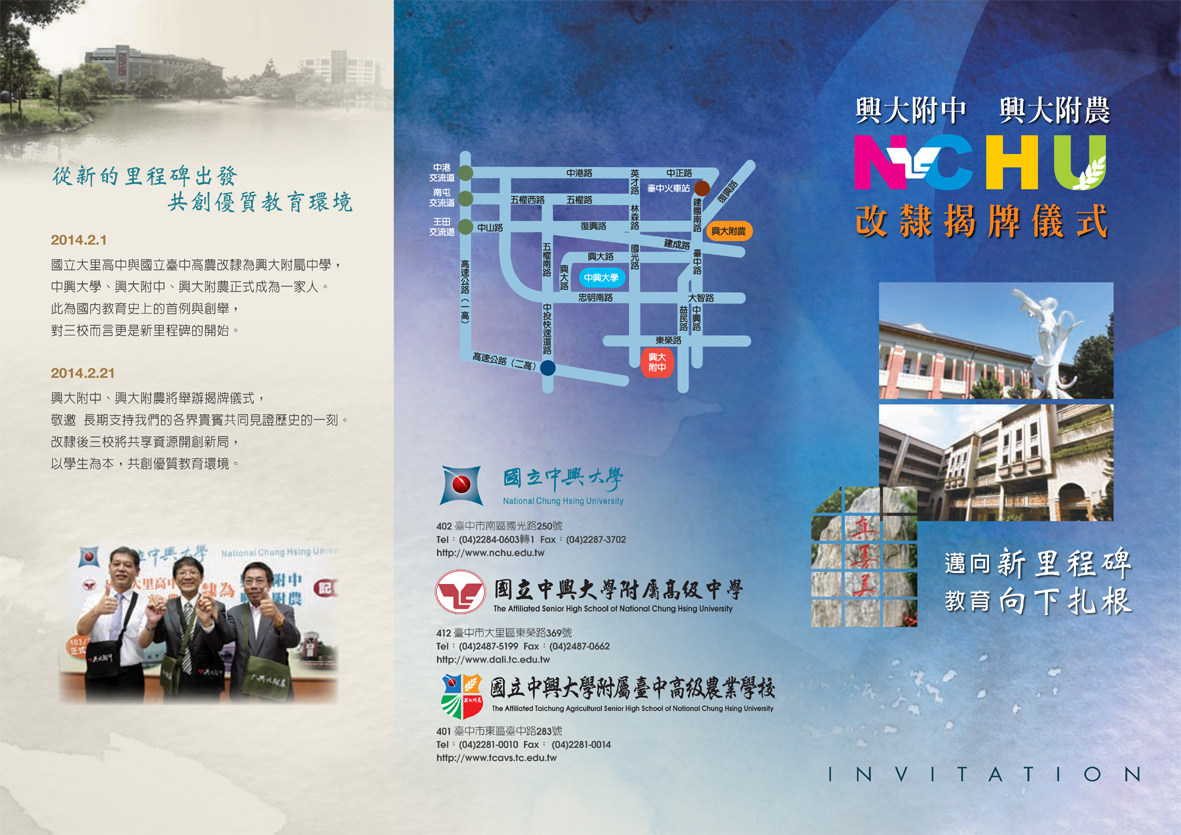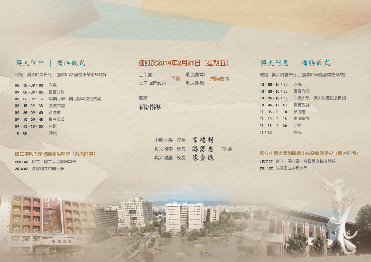 興大附中、興大附農2/21揭牌 敬邀各界貴賓蒞臨指導