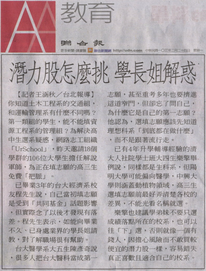 【媒體報導】潛力股怎麼挑 學長姐解惑