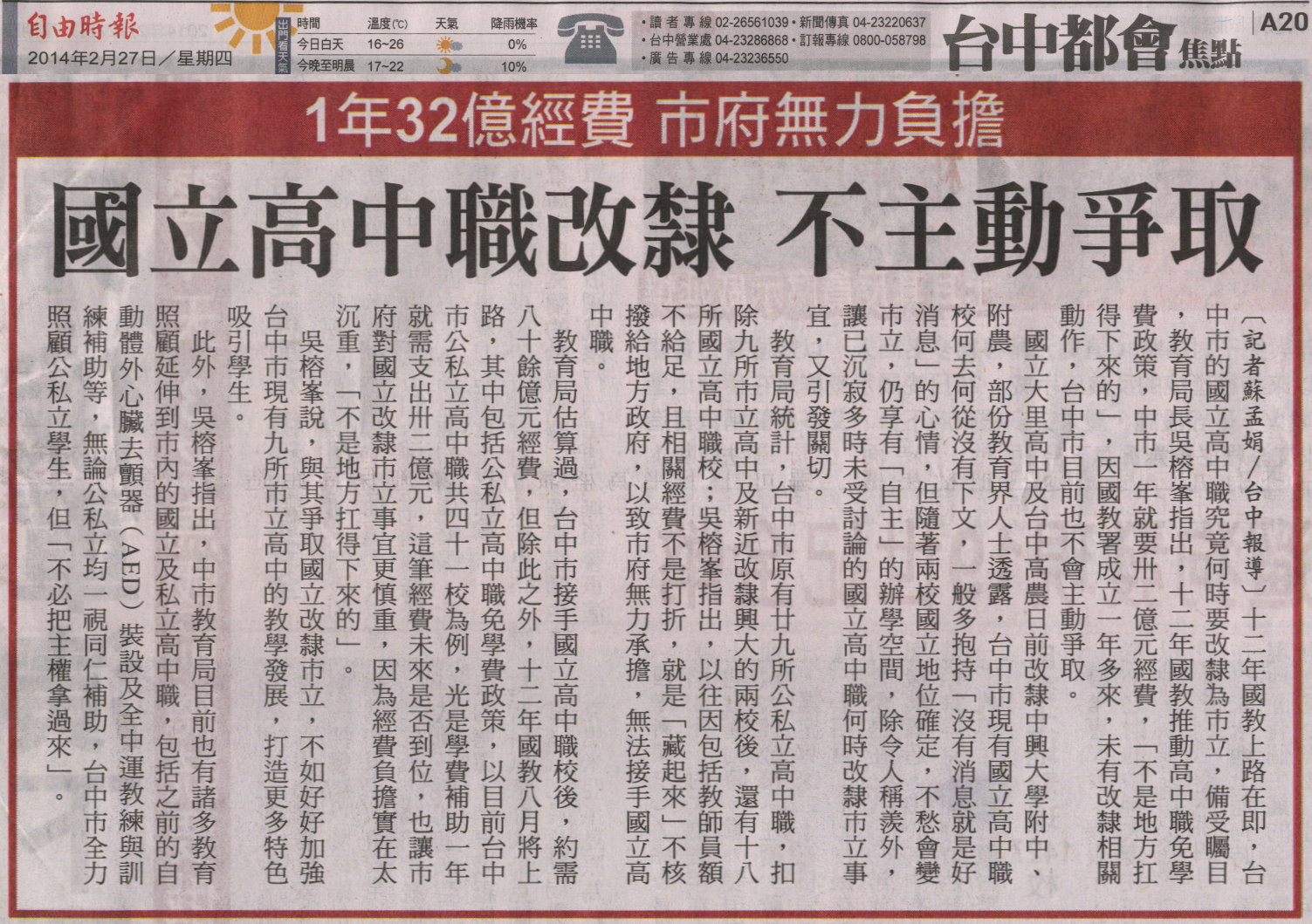 稿源:2014-02-27/自由時報/蘇孟娟/台中