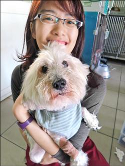 中興獸醫教學醫院獸醫師王咸棋。(記者蘇孟娟攝) 飼主不惜斥資七十萬元搶救愛犬,拉薩犬術後恢復健康,與醫院工作人員合影。(王咸棋提供) |