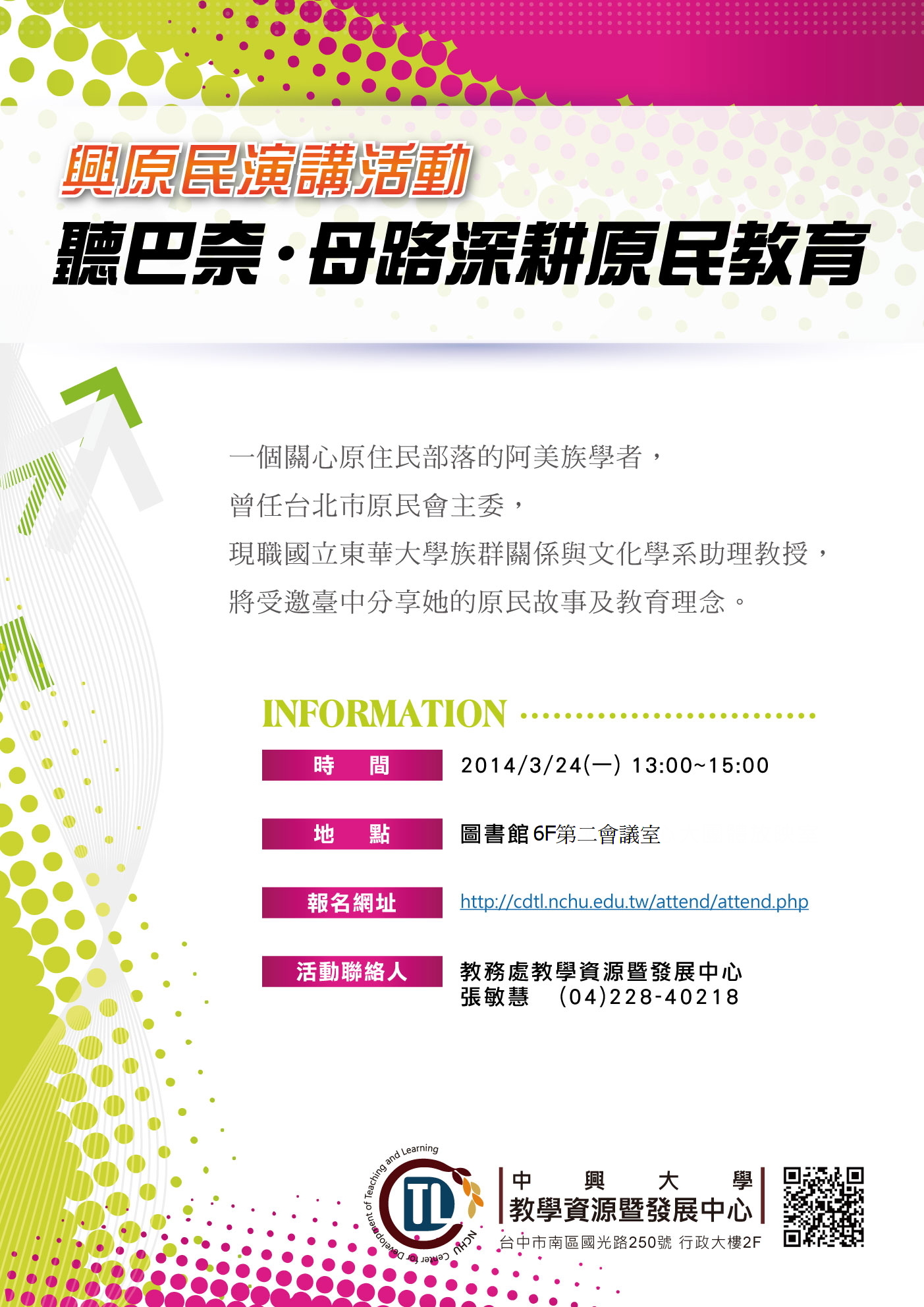報名網址:http://cdtl.nchu.edu.tw/attend/attend.php
