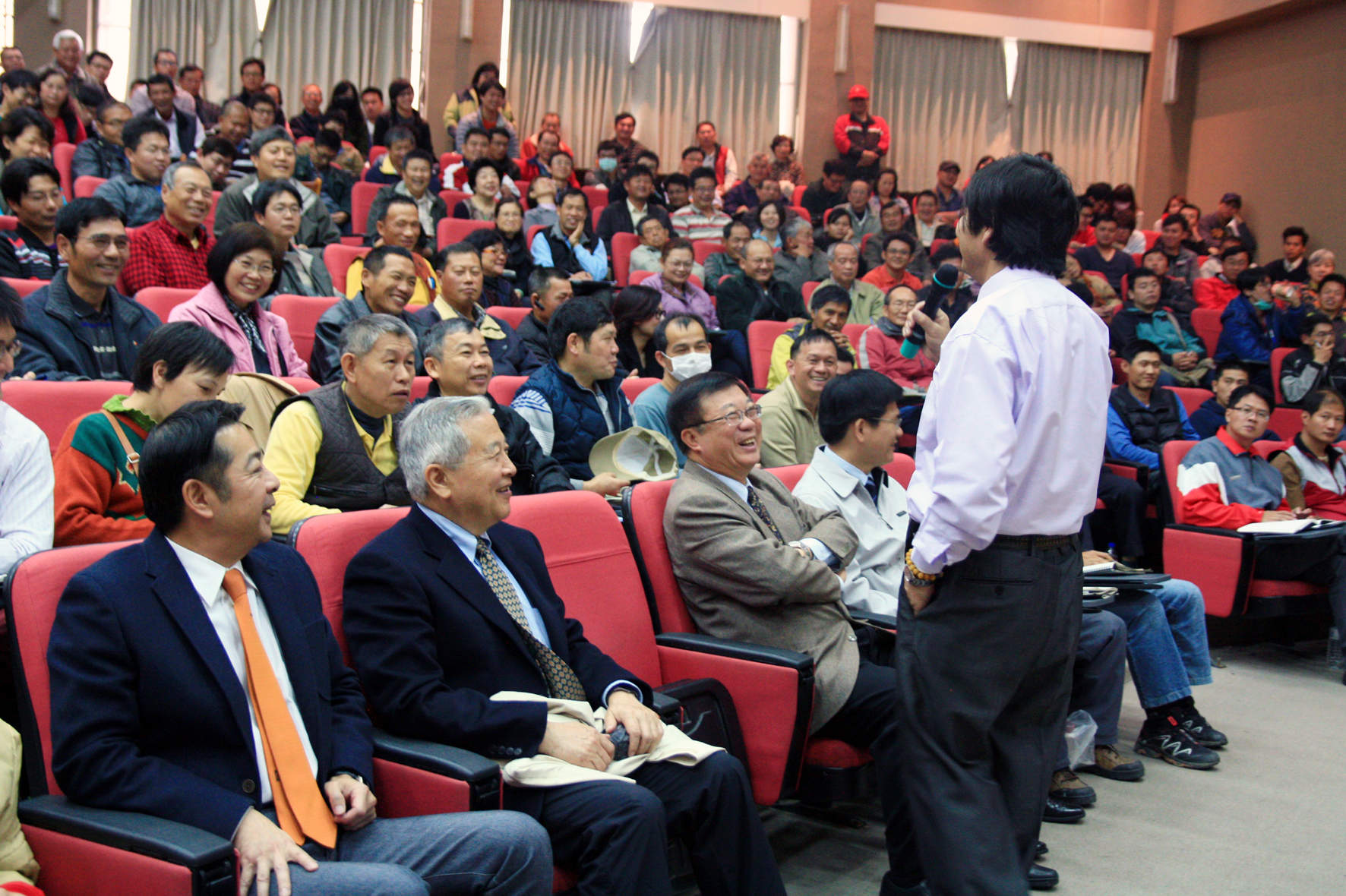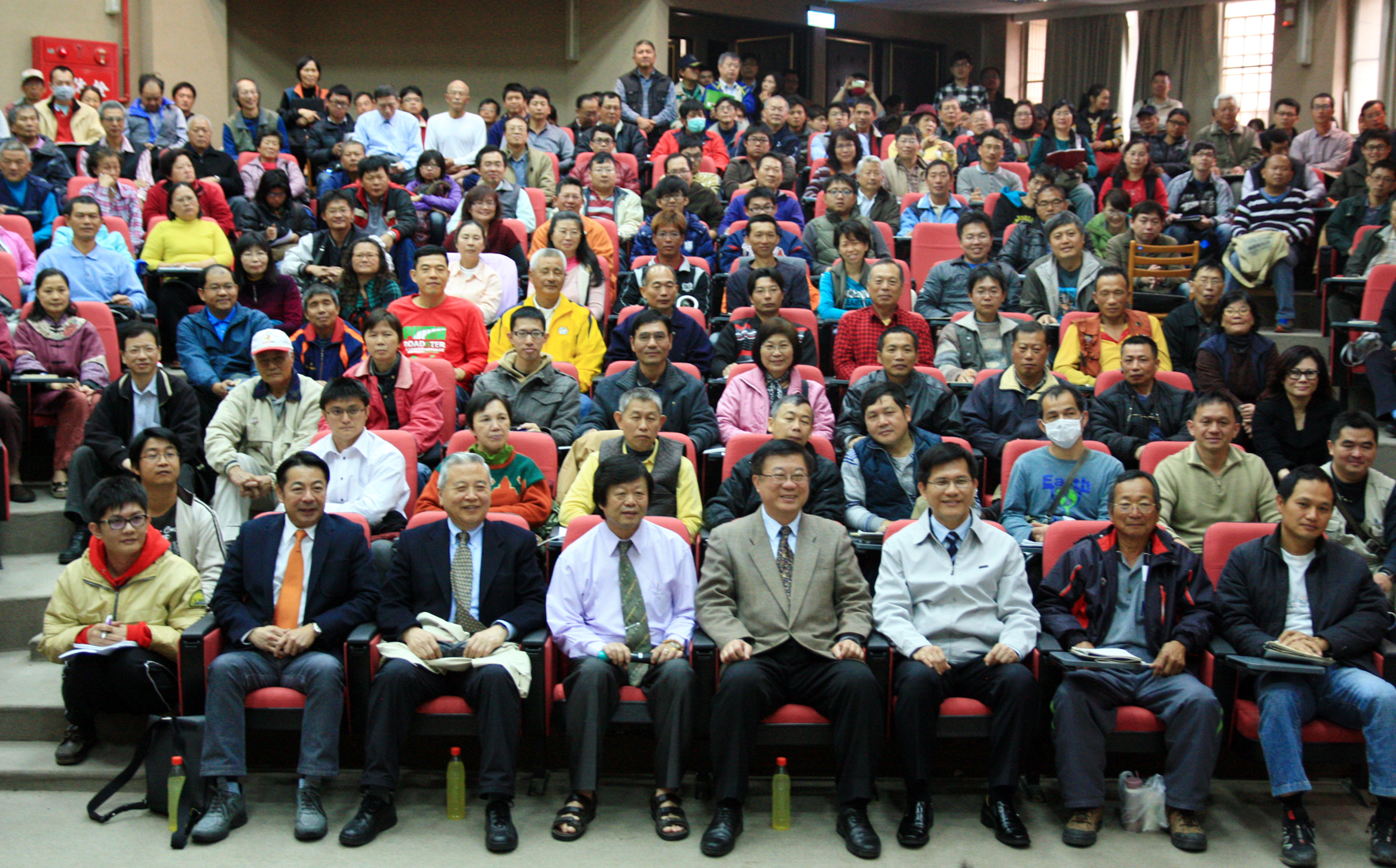 【圖文/媒體公關組】國立中興大學國農中心主任蔡東纂為國內知名的「現代神農」,每月定期在中興大學開設農民講堂,針對農民常遇到的栽種管理、病蟲害防治等主題進行實務教學,開課以來場場爆滿,200多位農友勤作筆記、踴躍提問,比大學生還要認真。8日上午,農委會主委陳保基、農試所長陳駿季、台大教授吳文希、立委林佳龍特地出席興大農民講堂,了解上課情況。