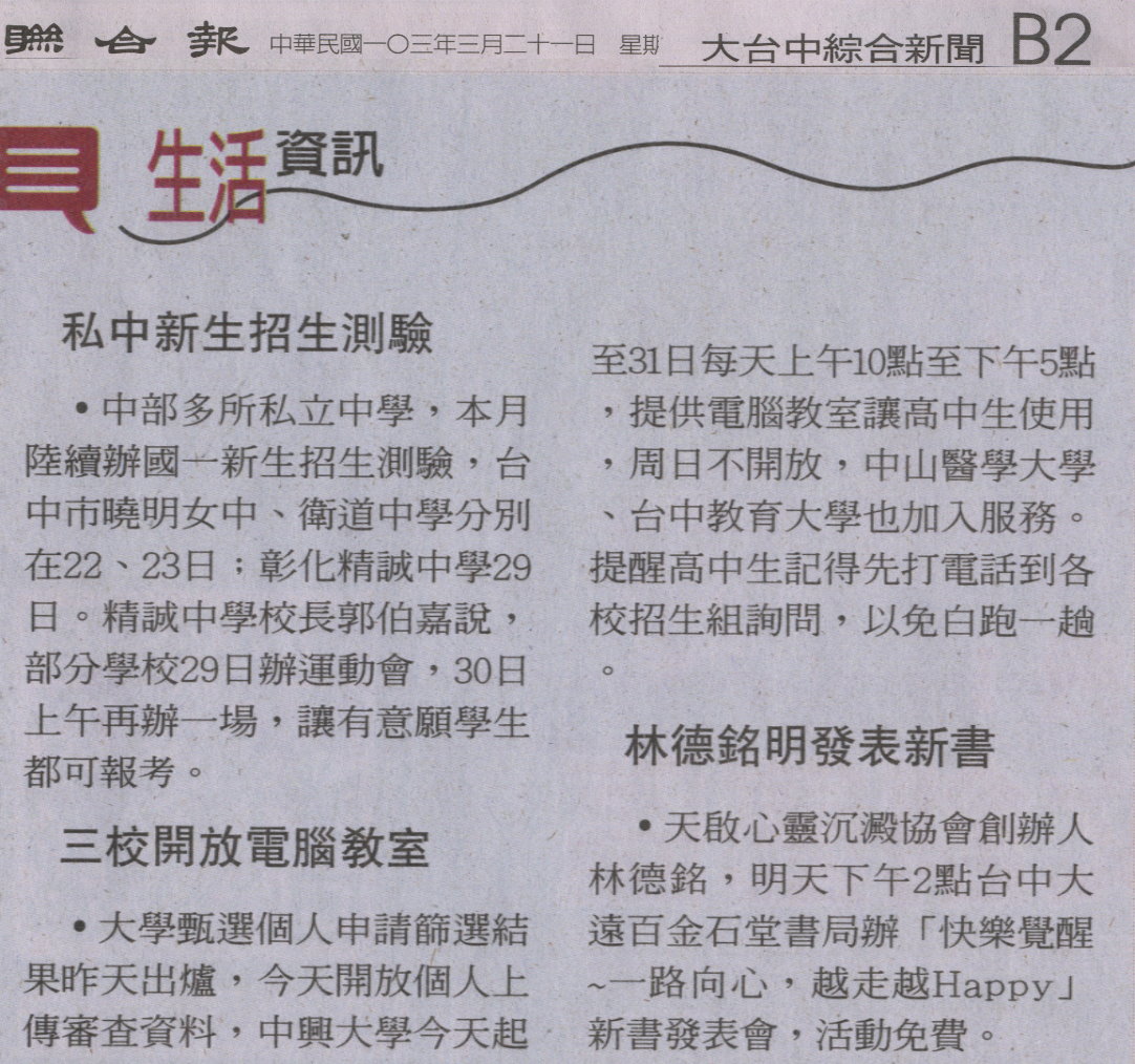 【媒體報導】台中三所大學 開放電腦教室