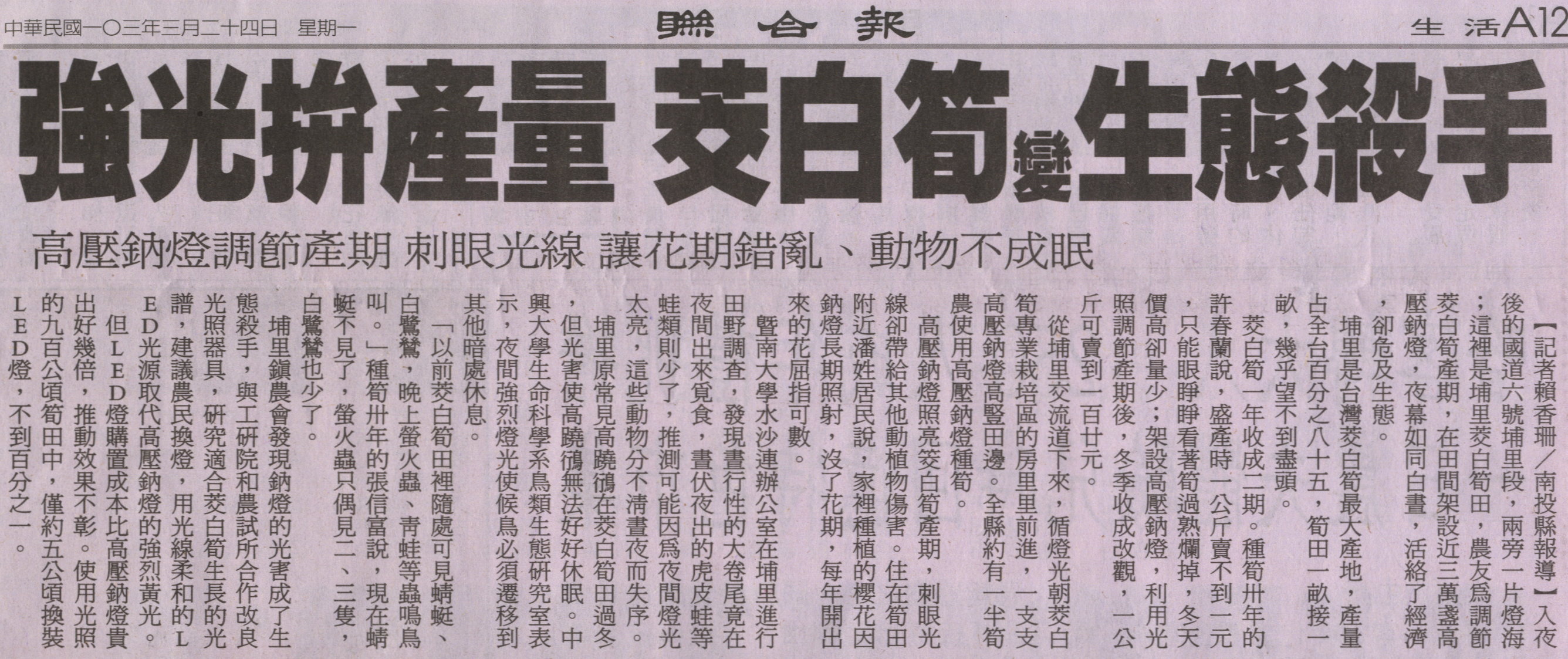 稿源:2014-03-24/聯合報/A12/生活/賴香珊/南投