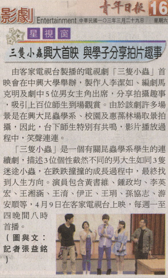【媒體報導】三隻小蟲興大首映 與學子分享拍片趣事