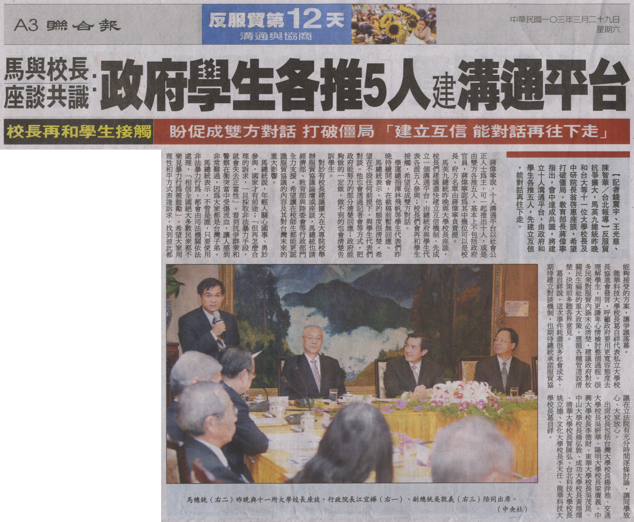 稿源:2014-03-29/聯合報/A3/錢震宇、王光慈、陳智華/台北