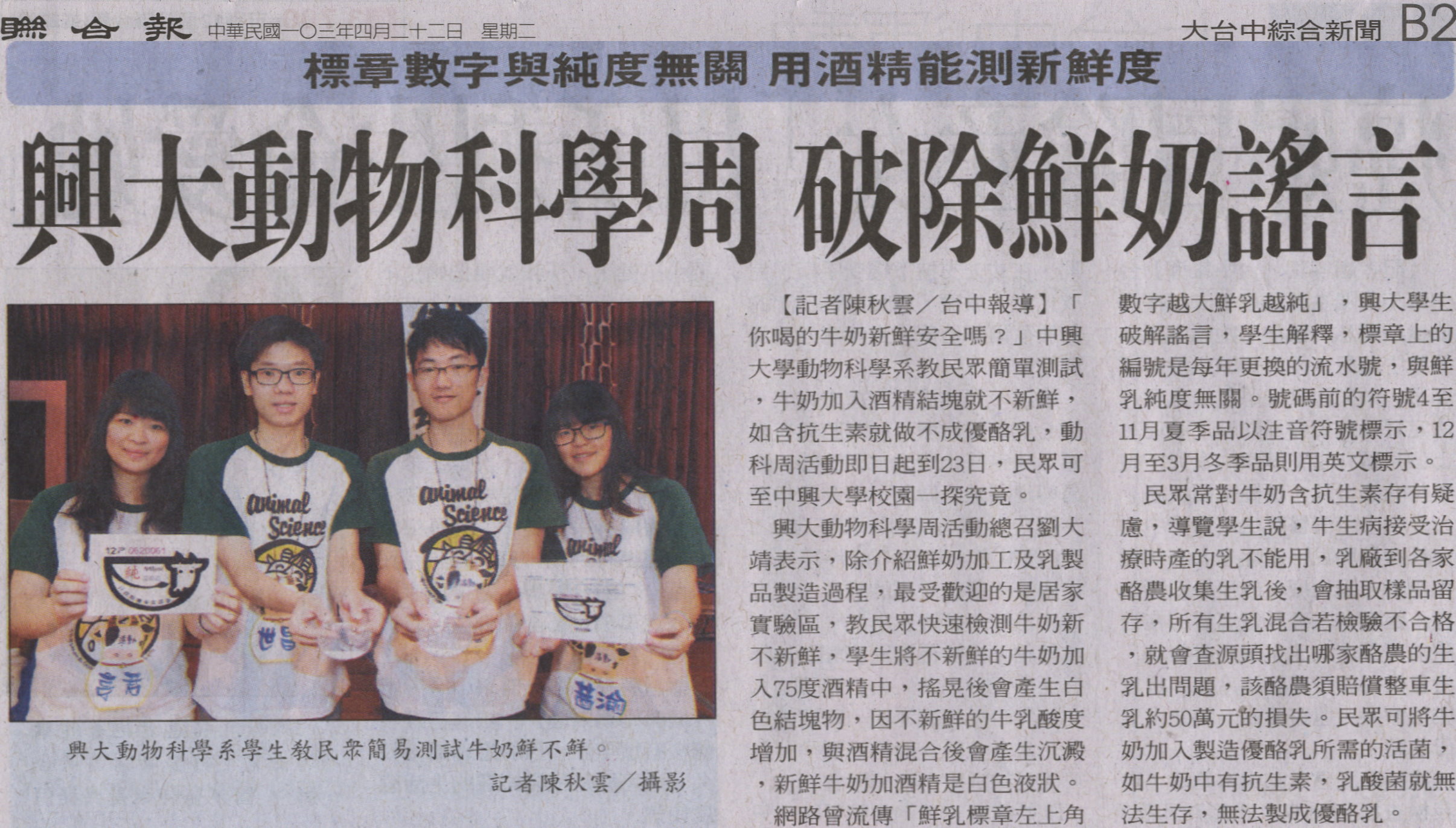 【媒體報導】興大動物科學周 破除鮮奶謠言