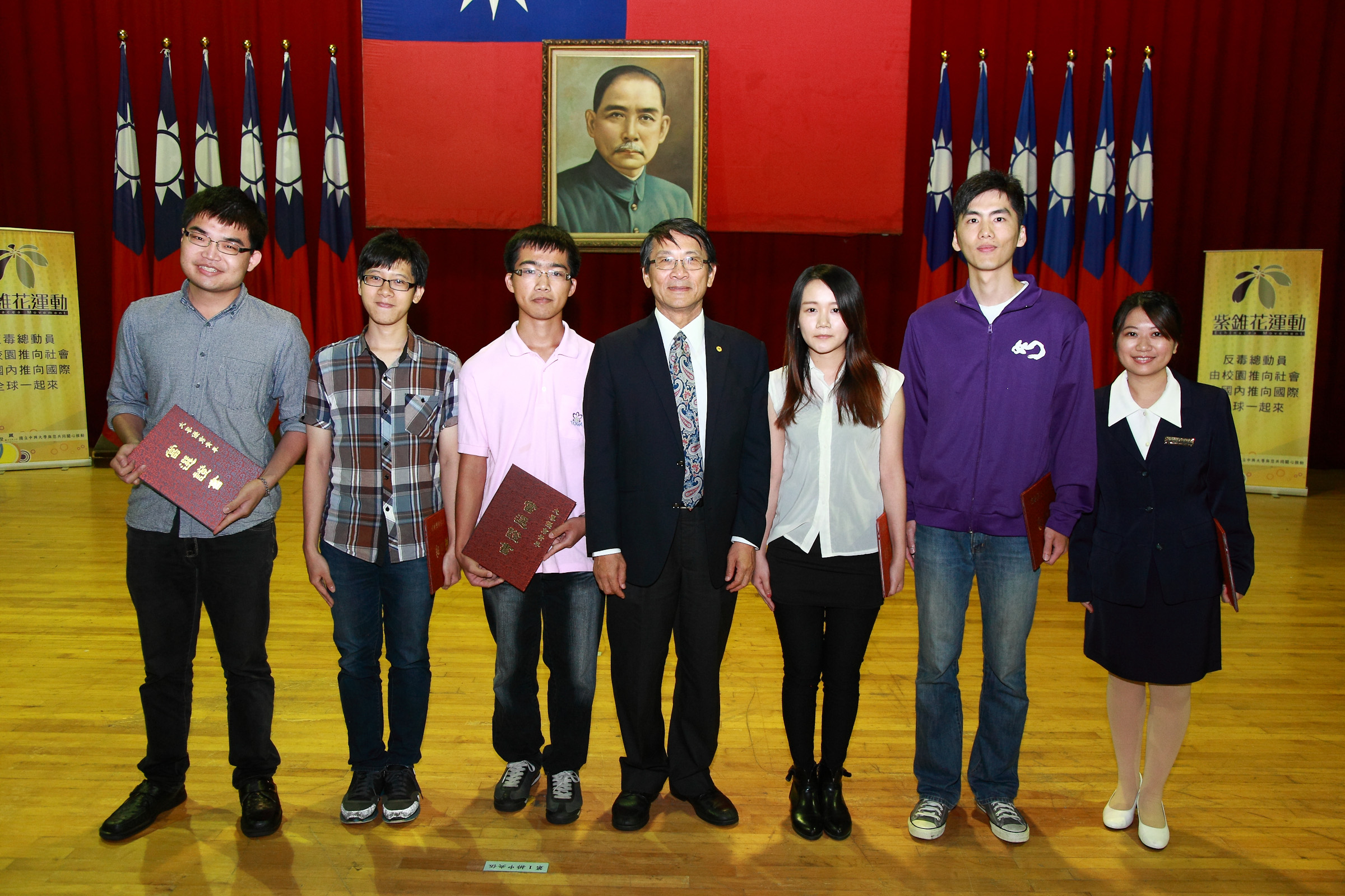 今天非常高興,要在週會的時間裡,表揚表現優異的同學們。今天表揚的獎項有「金鑰獎」、「103年大專優秀青年獎」、「社團評鑑績優社團獎」、「社團服務學習課程獎」以及「大一國文讀書心得獎」,獲得這些獎項的同學們更是大家學習的榜樣,這也代表學校在追求發展國際一流、亞洲頂尖大學的同時,仍能兼顧培育學生五育均衡發展的卓越表現。