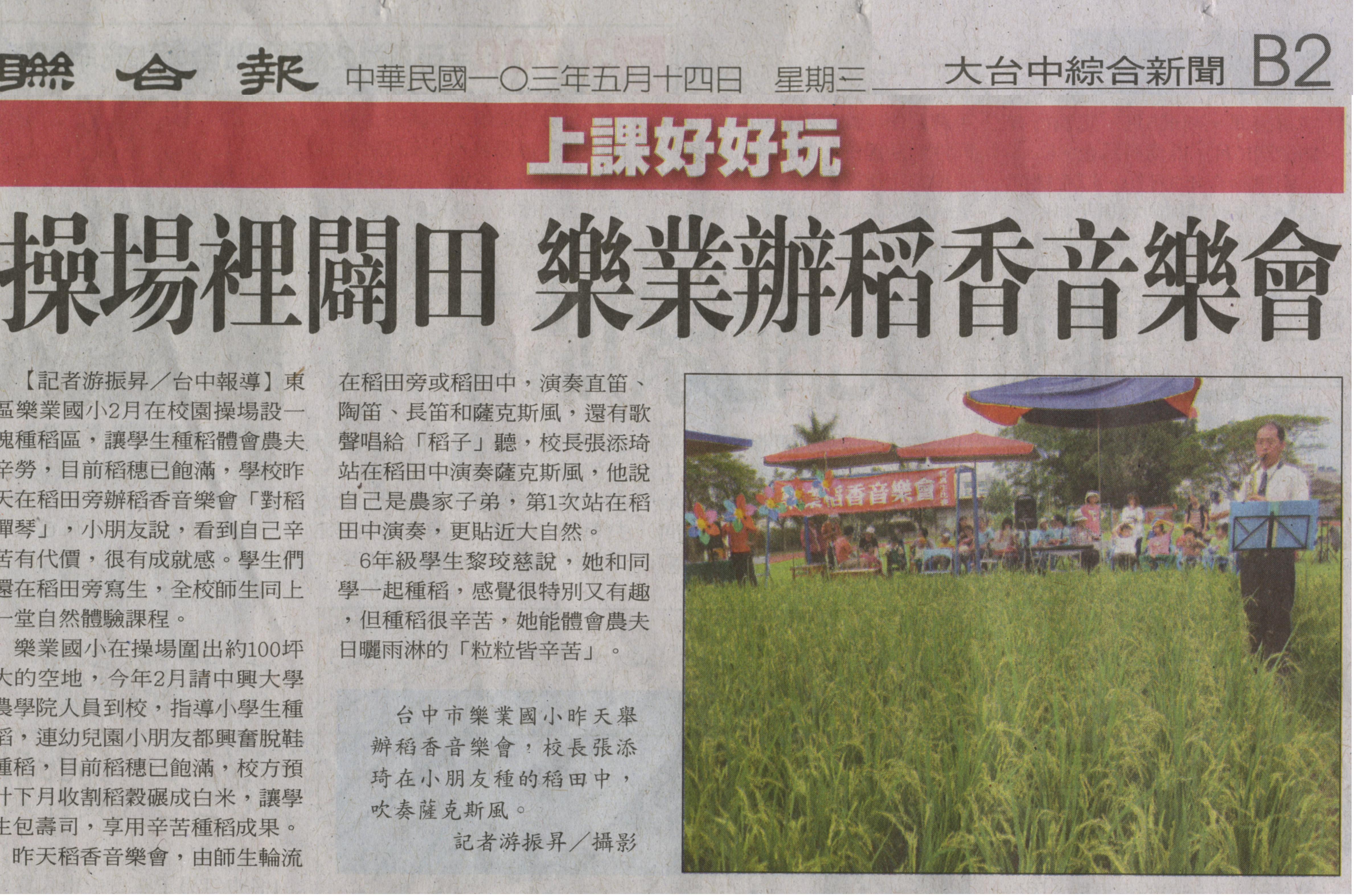 【媒體報導】操場裡闢田 樂業辦稻香音樂會
