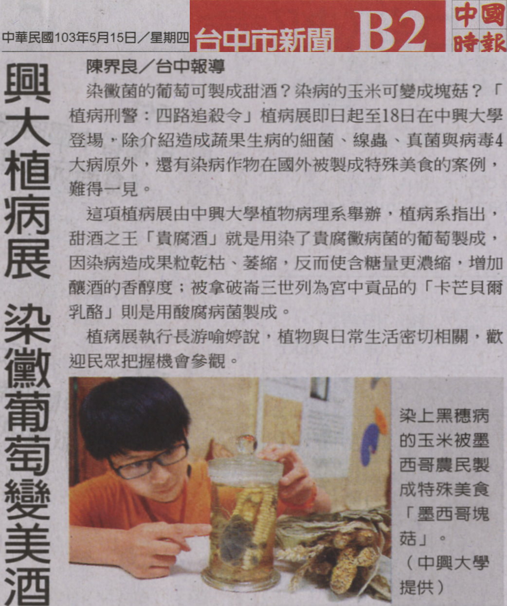 【媒體報導】興大植病展 染黴葡萄變美酒