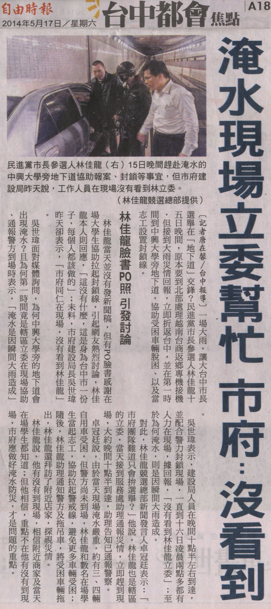 稿源:2014-05-17/自由時報/A18/焦點/唐在馨/台中