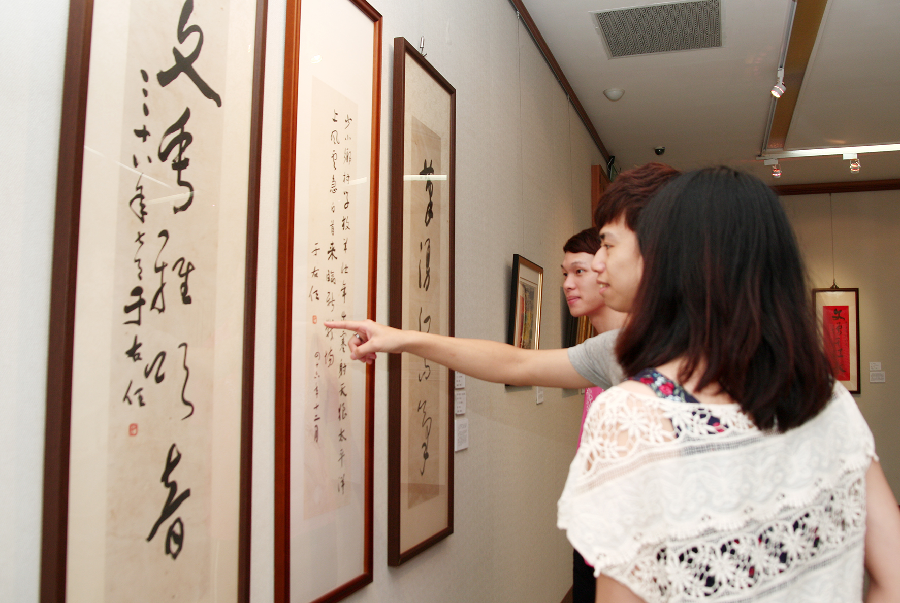 此次展出的項目以書法為最大宗,約30件,其中有一趣味組合,名列「國民黨四大書法家」的胡漢民(王慶光/鄭詩華藏)和于右任(王慶光/陳欽忠藏)作品出現於同一展場。興大藝術中心指出,「國民黨四大書法家」分別為隸書胡漢民、草書于右任、篆書吳敬恆、楷書譚延闓,胡、于二人在中興相會,也算趣事一樁,說不定他日有機會可看到四人齊聚中興。