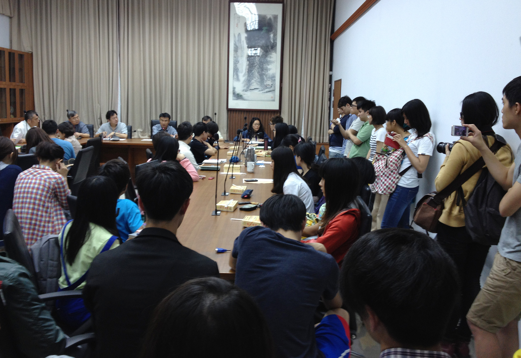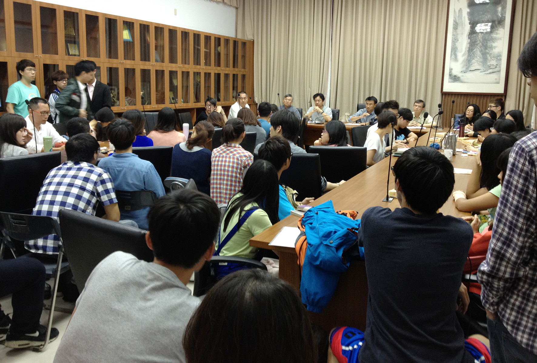 會議由陳吉仲主任秘書主持,呂福興教務長、歐聖榮學務長、方富民總務長、諮商中心白慧娟主任、中文系林淑貞主任、中文系陳老師出席,現場開放學生會等關心此案的社團及學生與會,吸引80多位學生到場了解。