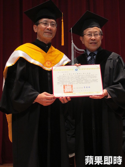 說出「年輕人領22K要怪自己的」的遠見天下文化事業群創辦人高希均,今天晚間在中興大學博士班畢業典禮中,自校長李德財手中接下「名譽管理學博士學位」,台中市市長胡志強特別到場觀禮祝賀。