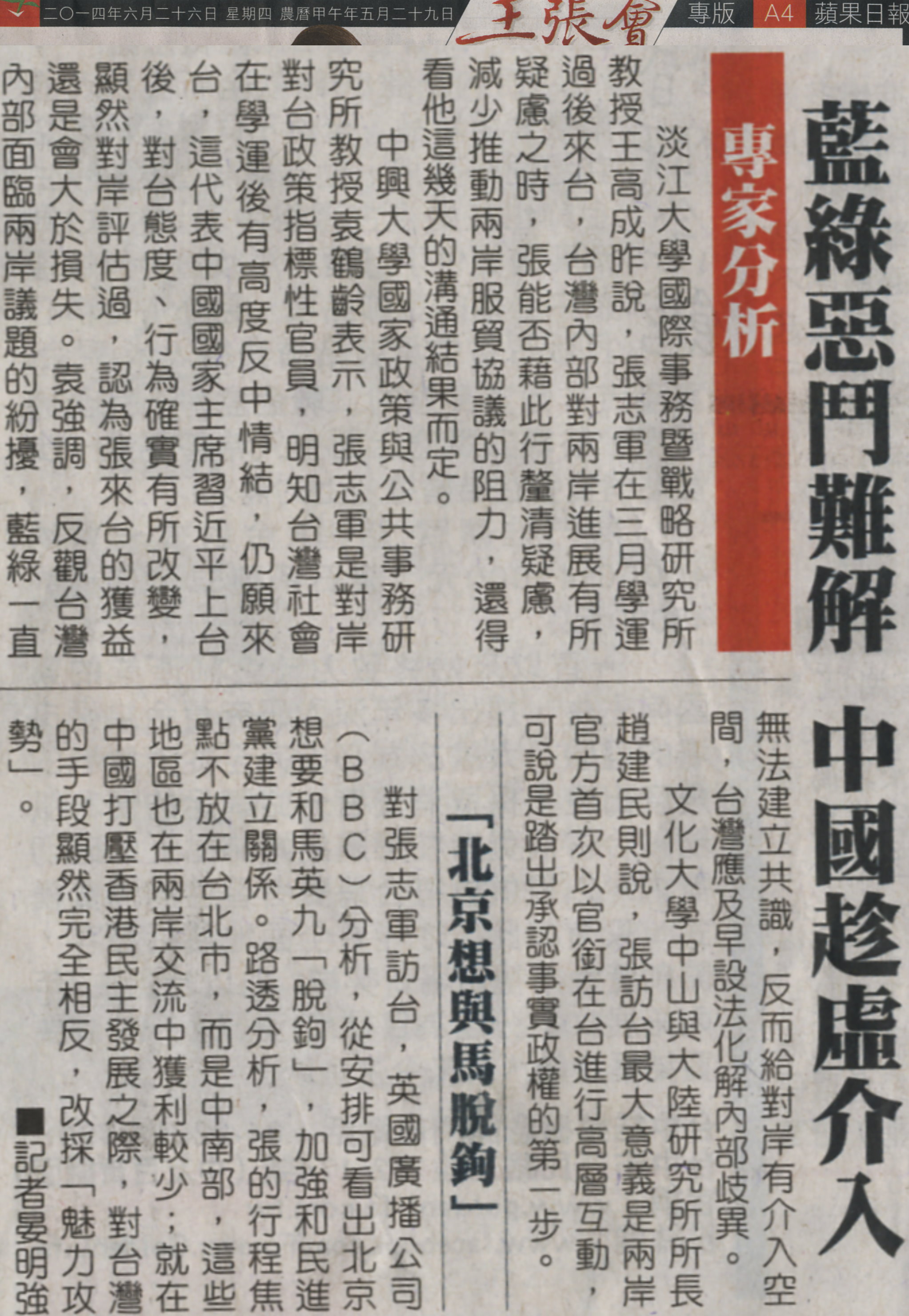 稿源:2014-06-26/蘋果日報/專家分析