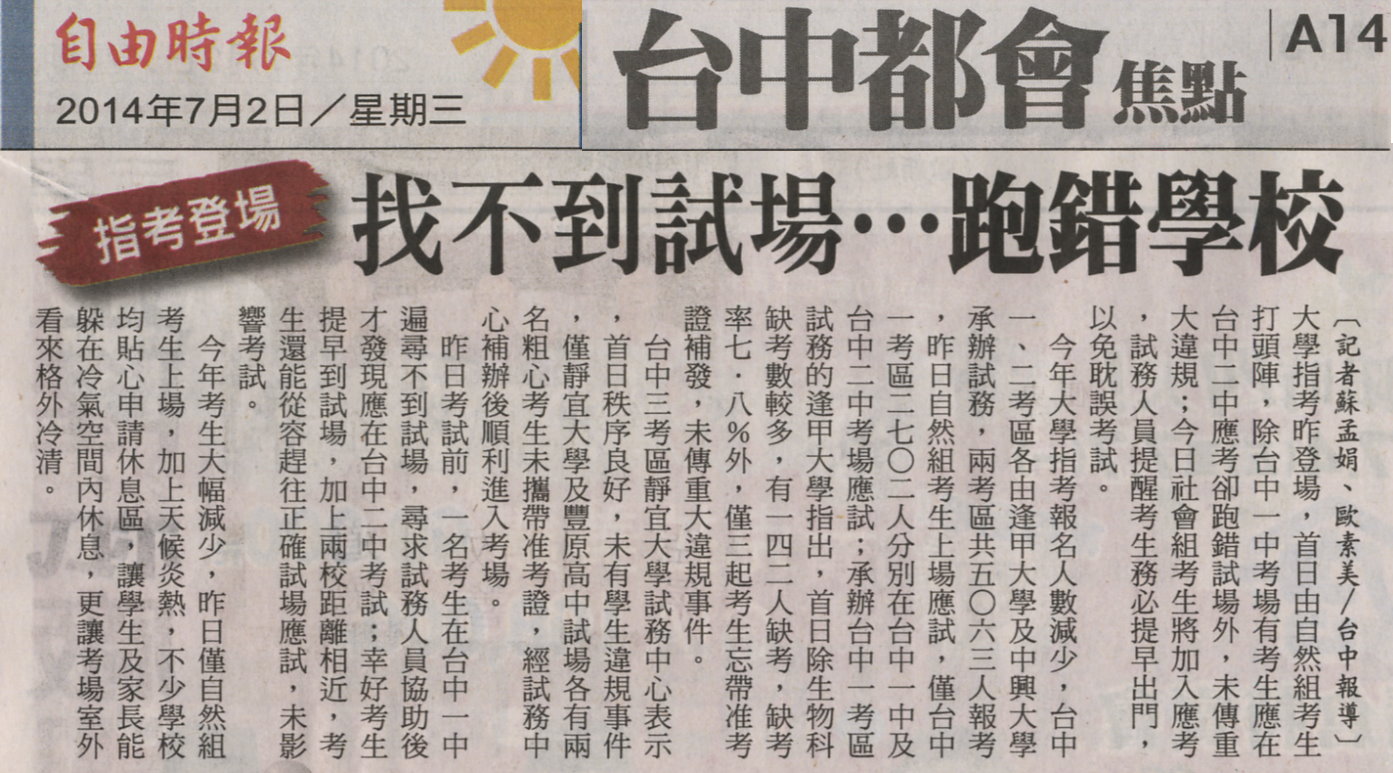 【媒體報導】《指考登場》找不到試場…跑錯學校